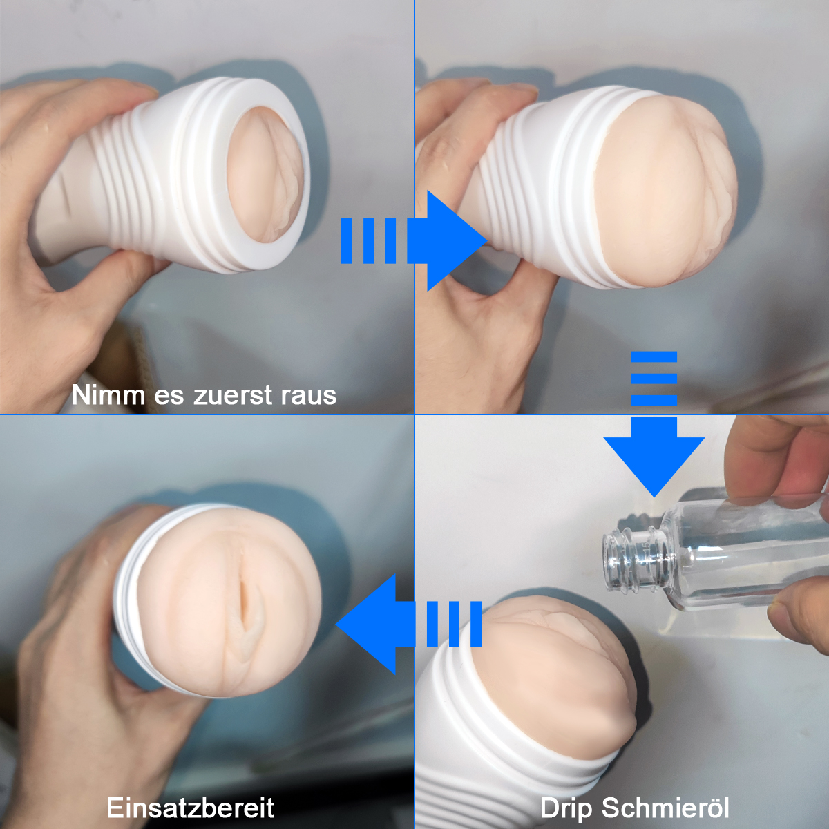 6. Note: Clean the product before and after use, wash with warm water and antibacterial soap, gently wipe with towel or soft cloth. Before using, add a drop or two of your favorite sex lube to the masturbation cup.