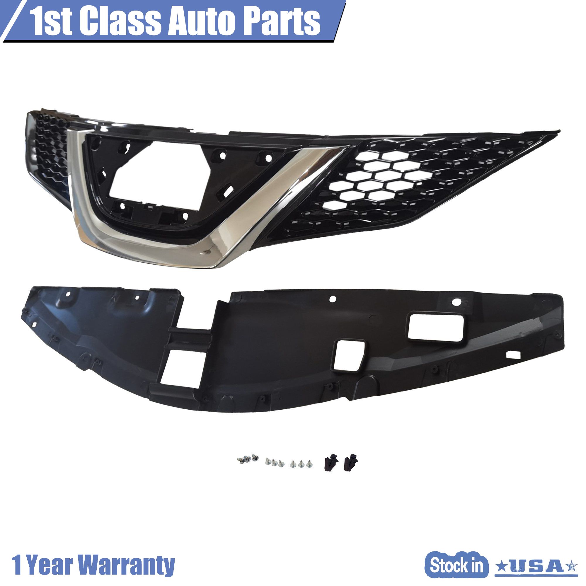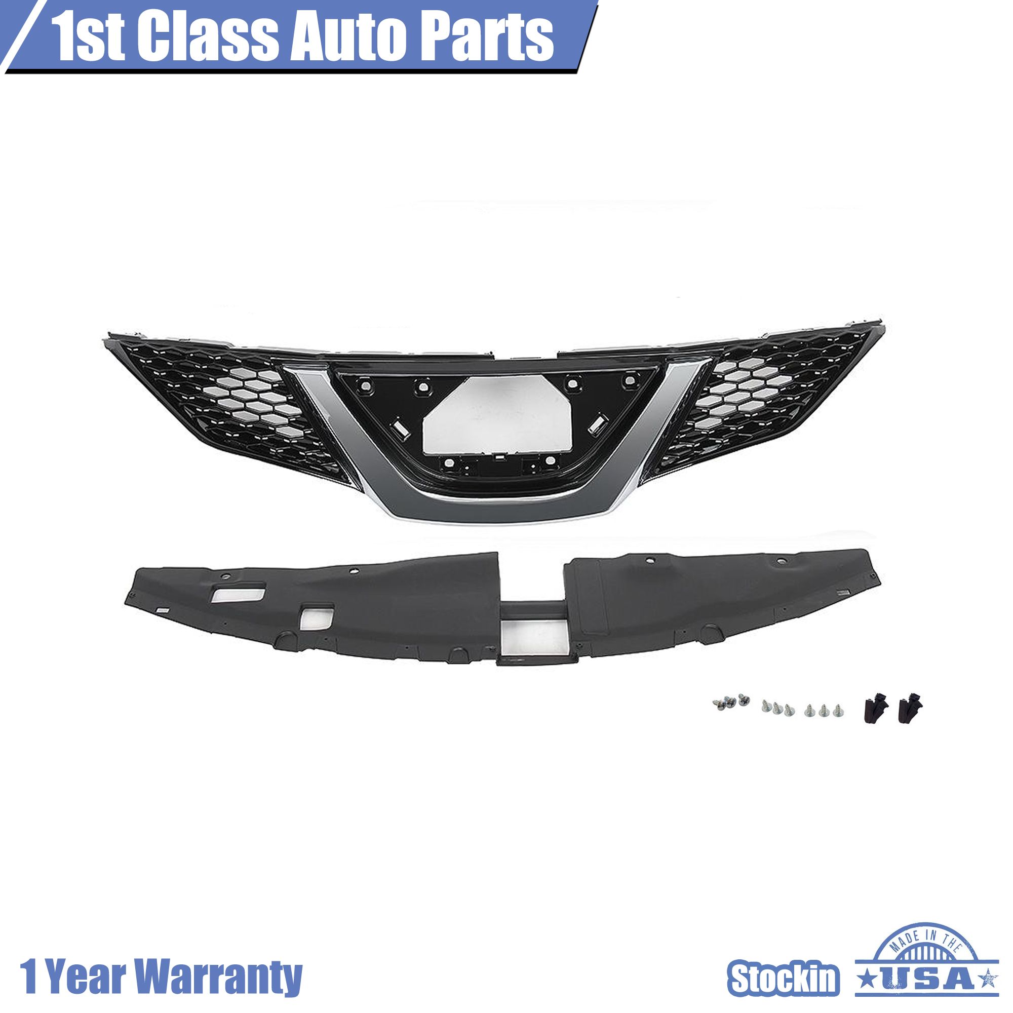 Front Upper Black Chrome Grille For 2017-2018 Nissan Rogue Sport S SV SL