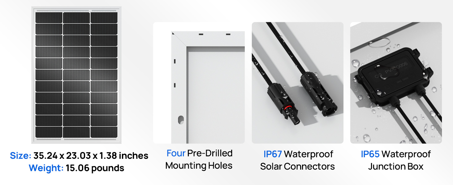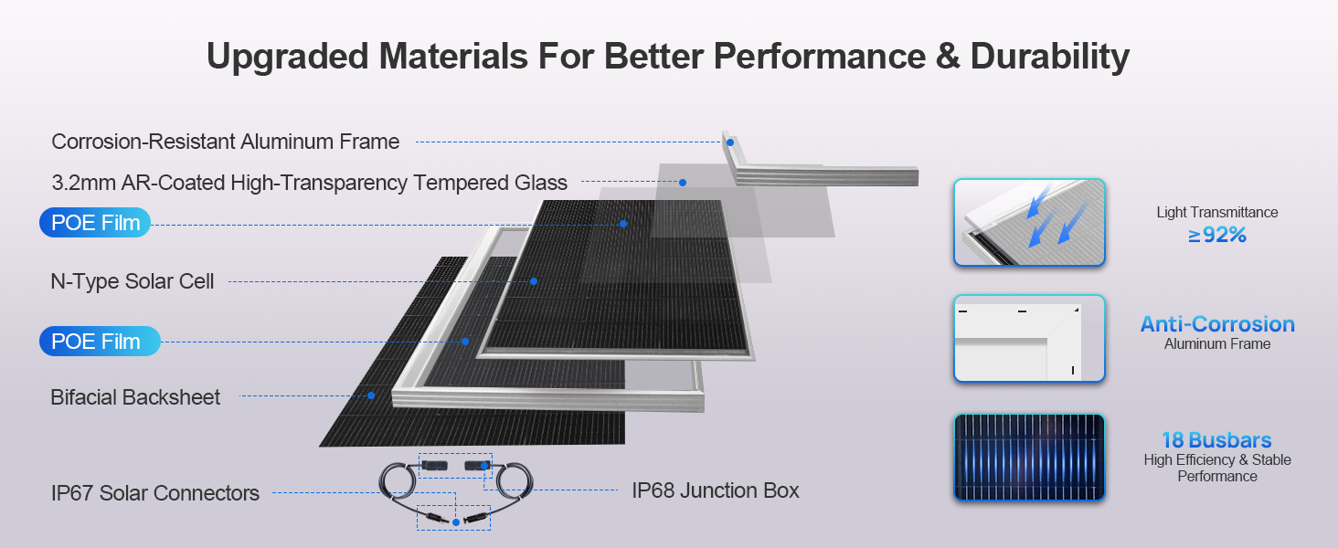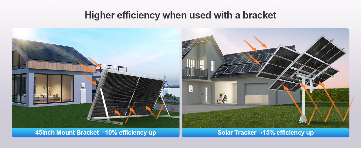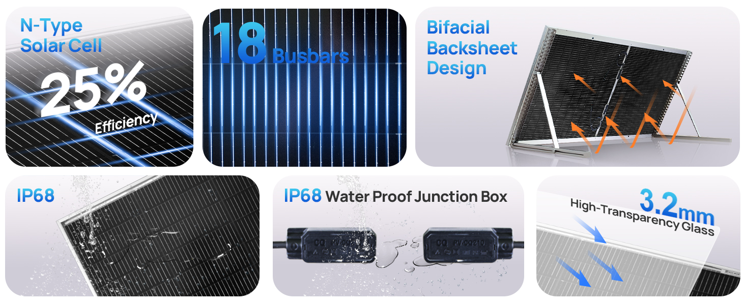 This panel captures sunlight from both sides, boosting energy yield by 15%—equaling over 100WH more daily per panel under 4 hours of full sunlight. For max efficiency, pair with tracker/45in mounts and install over highly reflective surfaces like snow, sand, or glass