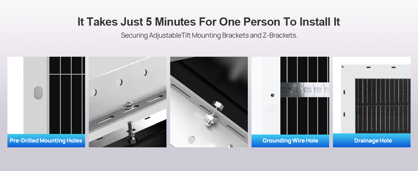 Comes with pre-drilled holes, grounding holes, and drainage holes—even beginners can install it easily without professional tools. It fits seamlessly for boats, RVs, rooftops, farms, and home, meeting your diverse power needs