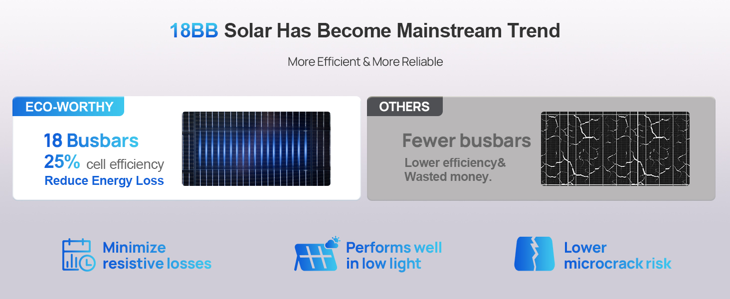 ECO-WORTHY 200W 400W 1000W Solar Panel N-Type 18BB Bifacial Home RV Off Grid