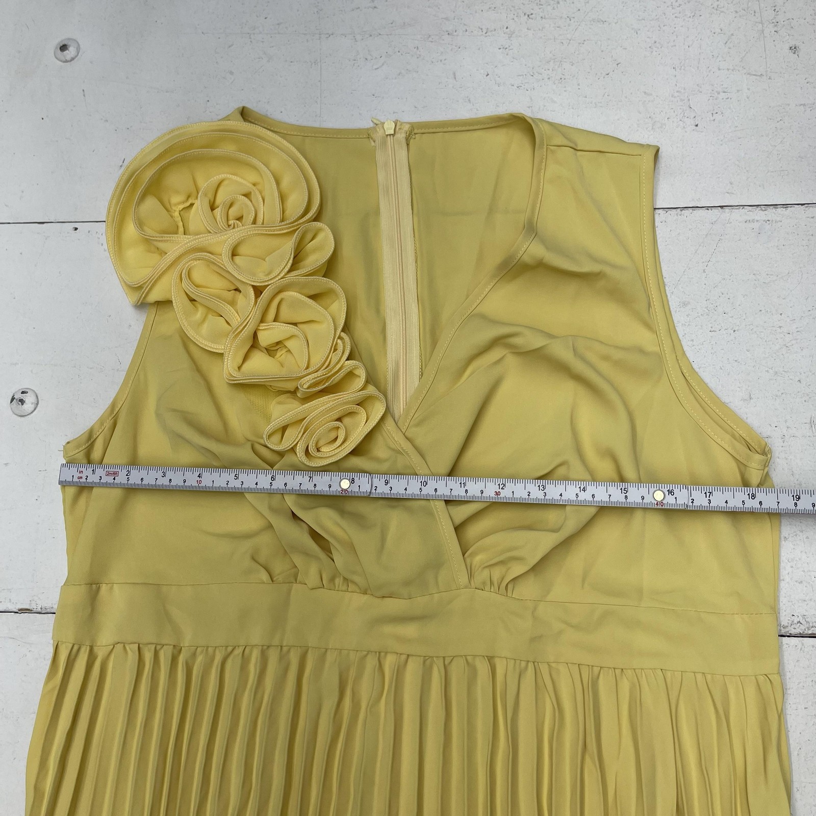 Shein Dress Womens 1XL Yellow Pleated Maxi Sleeveless V Neck Flower Applique